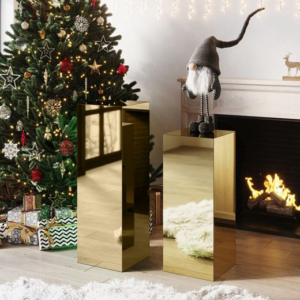 Display pedestals are a stylish way to elevate your holiday knick knacks, turning them into eye-catching focal points. Whether you’re showcasing a vintage Santa figurine or a handmade gingerbread house, pedestals add height and sophistication, allowing you to highlight your most-loved pieces in your entryway or otherwise bare corners.