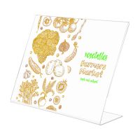 • Tent-Style Sign Holders This type of sign holder is often double-sided and sometimes take on the look of slanted models. Whatever the appearance, the tent-style models are great for their stability and ease of use in outdoor environments. Don’t discount their indoor appeal, either, as these acrylic holders are perfect for restaurants, taverns, bars and other eateries.