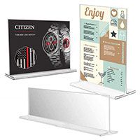 • Bottom-loading Sign Holders As the name implies, this type of clear sign holder is designed to accept your advertising material through an opening on the bottom. Use them as retail sign holders, display sign holders, table top sign holders and more! With its iconic t-shaped design and fast, easy signage changes, this is one acrylic sign holder that has proven to deliver the results you’re looking for.